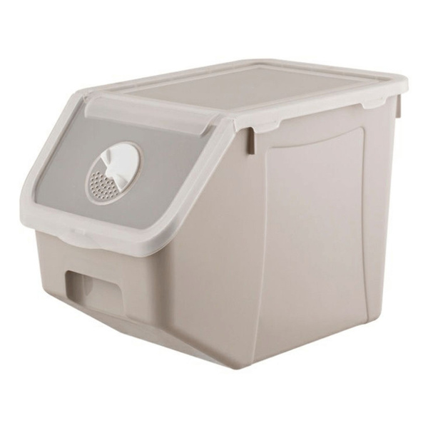 - Вентиляционные отверстия на подвижном клапане обеспечивают естественную циркуляцию воздуха в контейнере и отвод избытка влаги