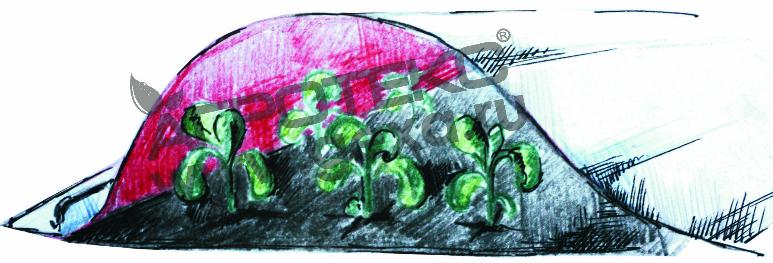 Бело-Красный двухслойный укрывной материал 60 от заморозков. Красный слой (внутренний) замедляет рассеяние в атмосферу накопленного в дневное время тепла, максимально защищая посадки от заморозков в ночное время, а также способствует повышению урожайности.