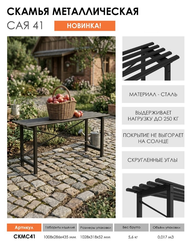 Скамейка "Сая 41" черный СКМС41 Ч (ЗМИ)