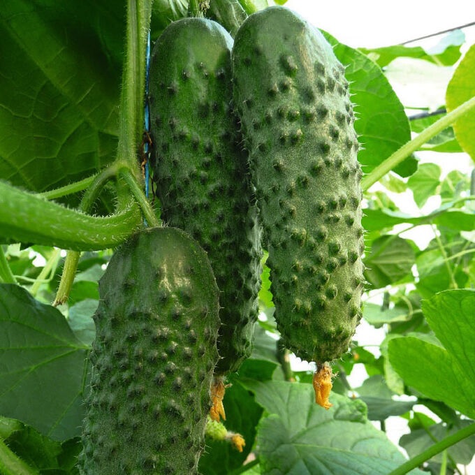- Растение сильнорослое, формирует по 4-5 и более завязей в узле. Зеленцы длиной 8-10 см, массой 70-90 г, цилиндрические, темно-зеленые, белошипые, бугорки средней величины, четкие, красивые