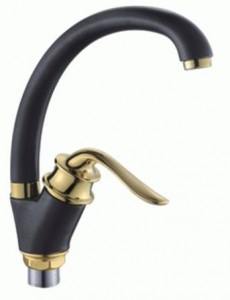 Смеситель для кухни POTATO P59219-6 трубч.излив, гайка, чер/золото