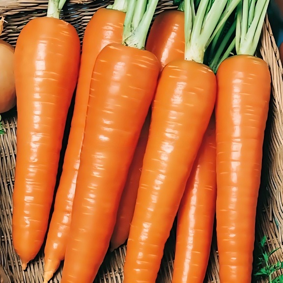 - Корнеплод красновато-оранжевый, удлиненно-конусовидной формы, с тупым кончиком, длиной 22-24 см, диаметром 4,5-6,0 см, массой 80-140 г. Сердцевина среднего и большого размера