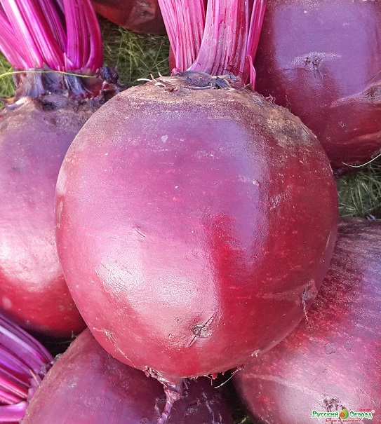 - Розетка листьев прямостоячая. Корнеплод округлой формы, с тонкой кожицей. Мякоть нежная, красная, без колец