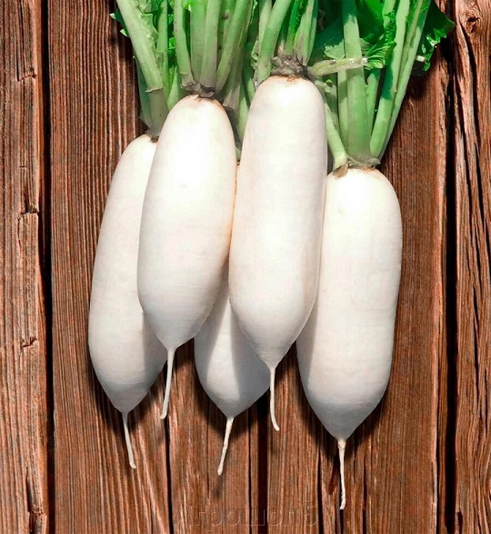 - Корнеплоды крупные, белые, овально-цилиндрические, гладкие, массой 3 кг и более. Мякоть белая, плотная, очень сочная