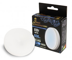 Лампа св/д ВАШЕ СИЯТЕЛЬСТВО GX53 8W(650lm) 6500K 6K матов.