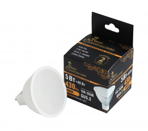 Лампа св/д ВАШЕ СИЯТЕЛЬСТВО MR16 GU5.3 220V 5W(430lm) 3000K 2K матов.